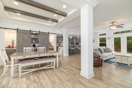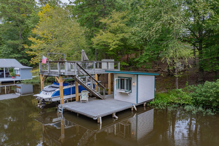 A great Northwest Shore main lake cove location, water, views, furnishings, and more are all delivered here at 223 Anchor Drive. This 2019 home has a modern floorplan and amenities - large kitchen with stainless appliances, wine refrigerator, wall oven & microwave. Extensive hardscaping and lighting are anchored by a beautiful firepit & walkway. Views from every room keep nature at the forefront and an expansive deck overlooks the lake. A new 8000 lb boatlift and 230 electrical are installed at the boathouse with sundeck. A unique boathouse shed features sliding glass doors, an a/c, microwave, refrigerator, and pass-through window area for easy living. Floored deck space and crawl space provides great storage. Main Lake Cove is great for floating and easy access to big water for surfing, tubing, and boat rides to the marina & waterfront dining.